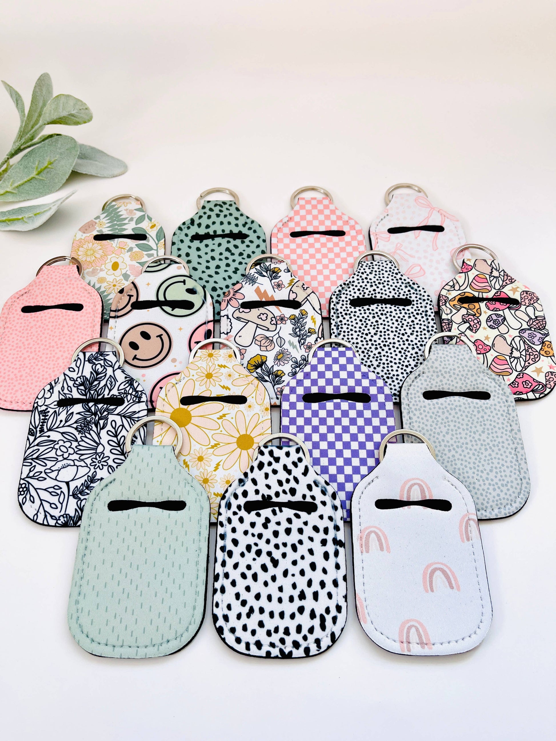 Each handmade hand sanitizer holder keychain is unique, so design placement may vary slightly. Colors may also differ slightly from what you see on screen due to monitor settings.