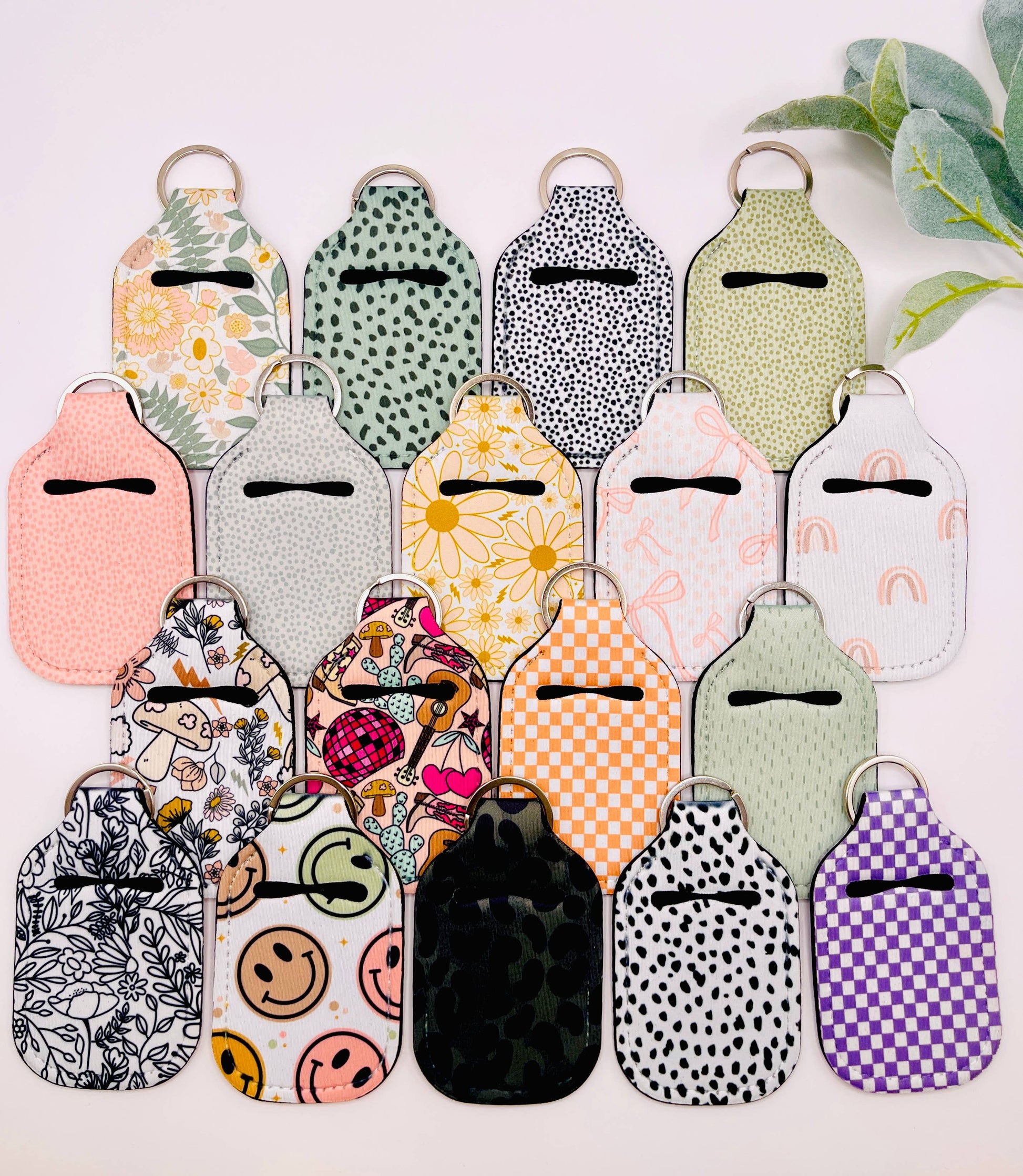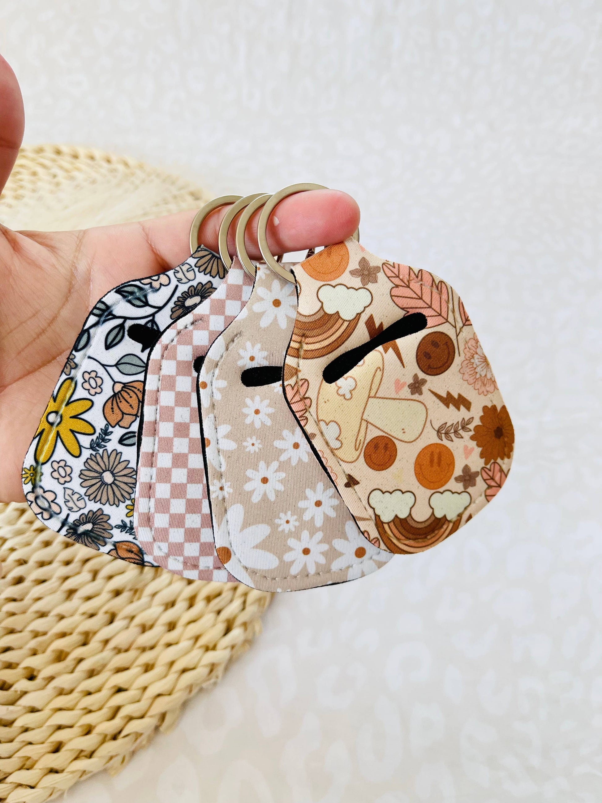 Hand Sanitizer Holder Keychain | Preppy Keychain | Hand Sanitizer Holder | Boho Handsanitizer | Retro Keychain | Happy Face Floral Keychain